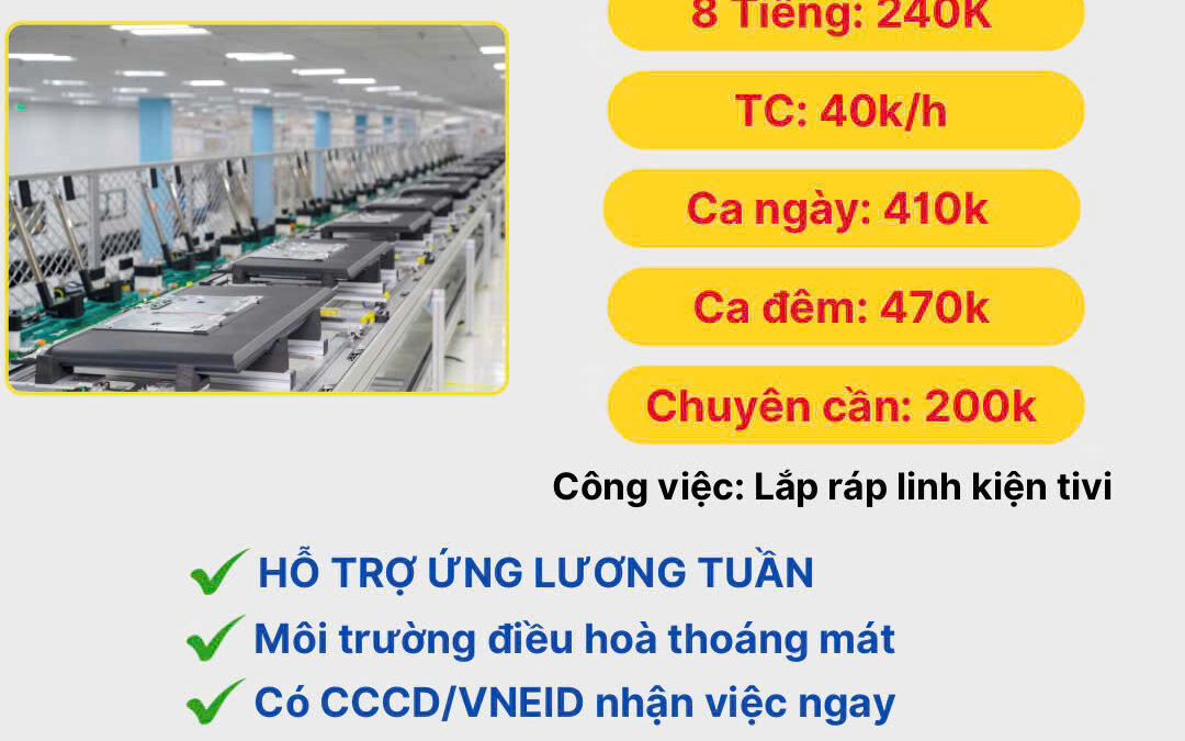 Tuyển dụng 50 nam/nữ lao động phổ thông lắp ráp linh kiện Tivi