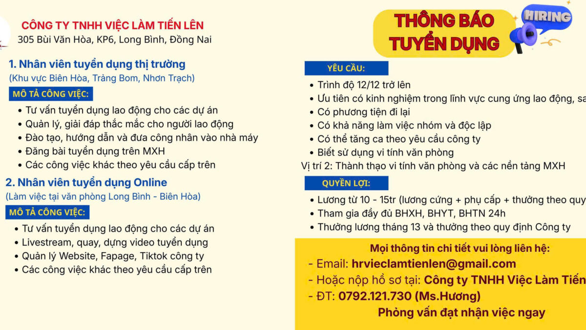THÔNG BÁO TUYỂN DỤNG