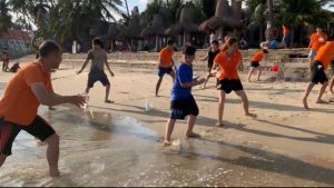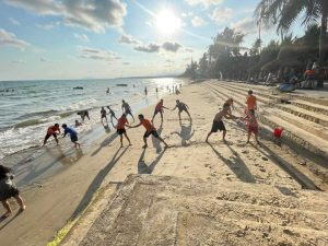 Các thành viên hào hứng với nhiều trò chơi vận động tập thể thú vị, đòi hỏi tinh thần đồng đội để vượt qua thử thách.