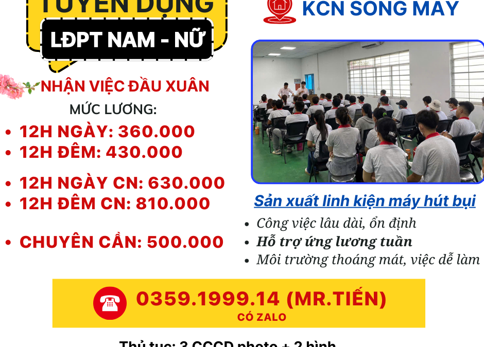 TUYỂN DỤNG LĐPT NAM – NỮ NHẬN VIỆC NGAY