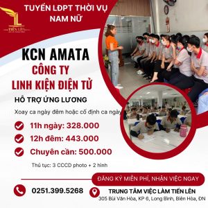 CÔNG TY LINH KIỆN ĐIỆN TỬ KCN AMATA – BIÊN HÒA – ĐỒNG NAI TUYỂN DỤNG LĐPT