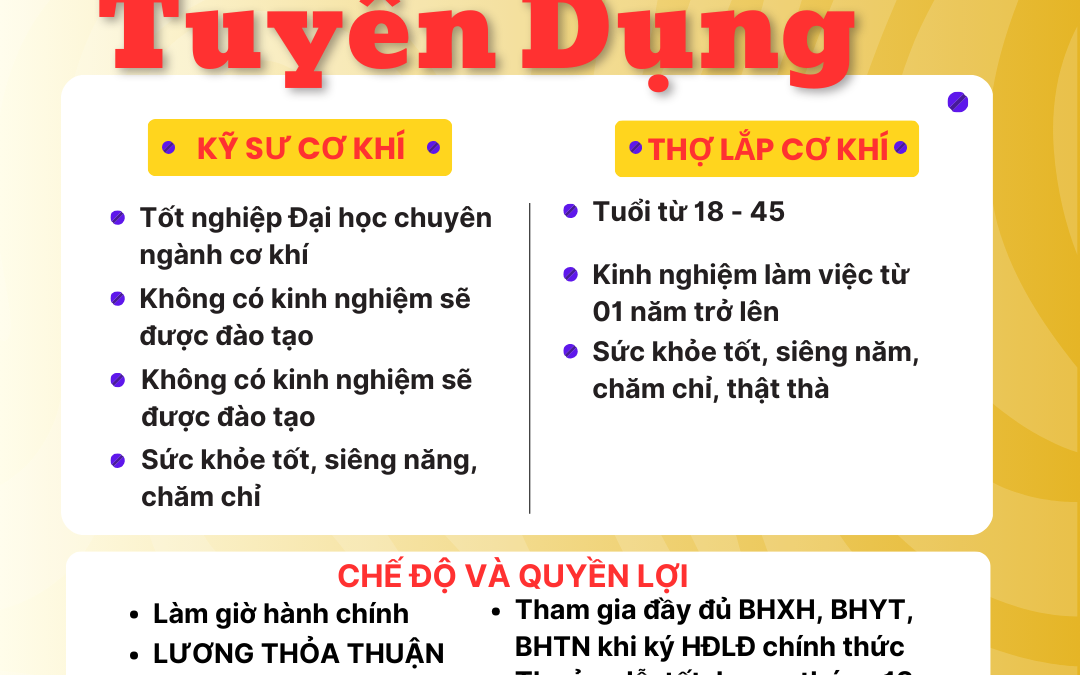 Công Ty Cơ Khí Tuyển Dụng Các Vị Trí Sau: